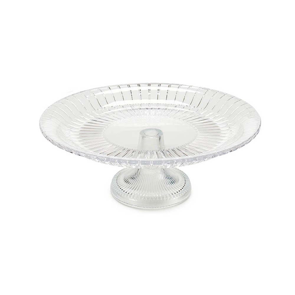 Soporte para tarta con un bonito diseño con relieves en la base por la parte exterior y en el pie. El expositor de cristal es super práctico para presentar y servir bizcochos, pasteles, tartas decoradas y todo tipo de dulces.