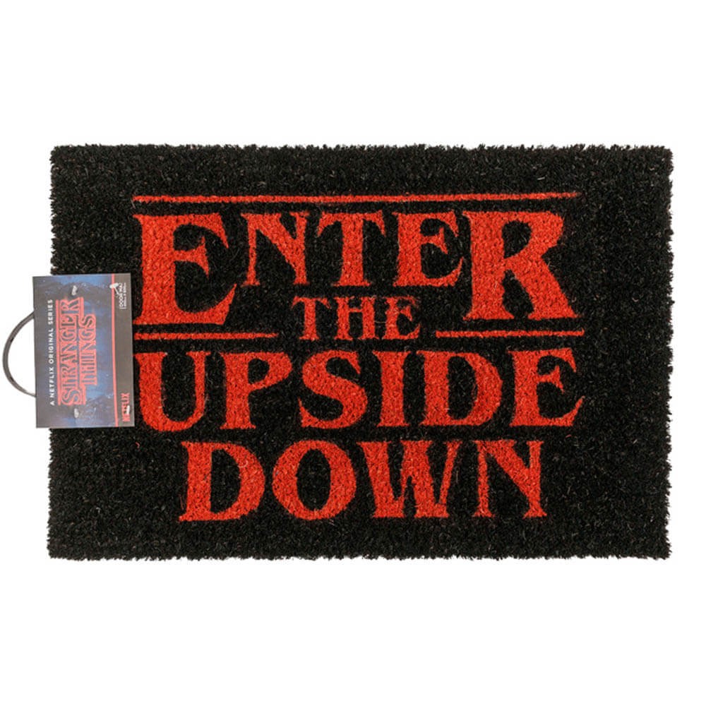 Los felpudos no son solo un accesorio funcional, es lo primero que vemos al llegar a casa de alguien por lo que dice mucho de nosotros. Este felpudo de coco tiene un fantástico diseño en color negro con la superficie estampada con la frase "Enter the upside down" en color rojo, ideal para que le des una bienvenida curiosa a tu familia y amigos.
