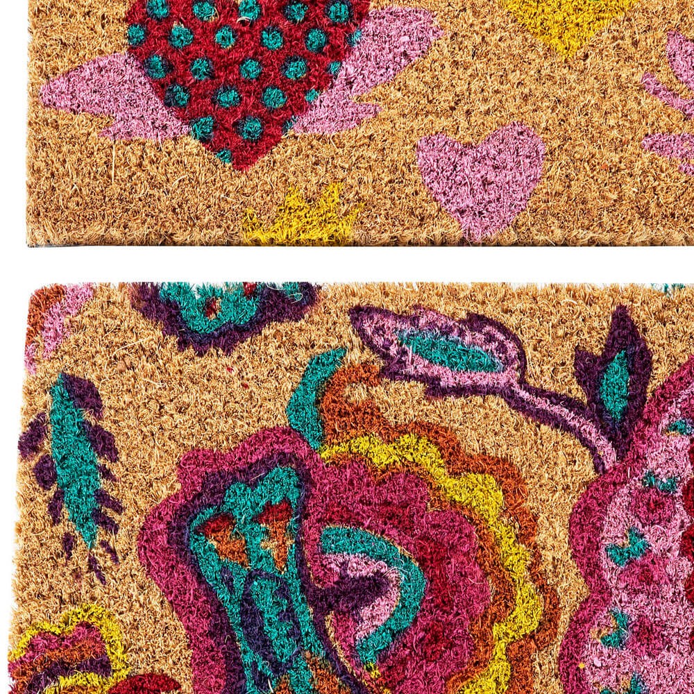 Los felpudos no son solo un accesorio funcional, es lo primero que vemos al llegar a casa de alguien por lo que dice mucho de nosotros. Este felpudo de coco tiene un diseño alegre y colorido en tonos rosas con el que darás un toque de color al hall de tu casa, ideal para darle la bienvenida a tus familiares y amigos.