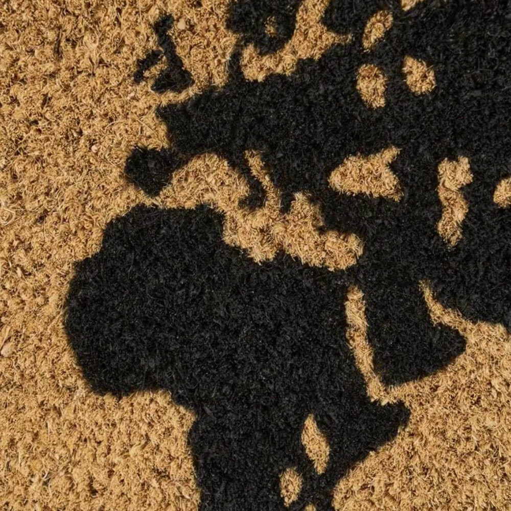 Limpia la suela de tus zapatos antes de entrar en tu casa con este felpudo decorativo con un moderno diseño del mundo en color negro sobre base natural, perfecto para evitar que entre polvo, barro y demás sustancias dentro de tu casa y así la mantienes limpia durante más tiempo.