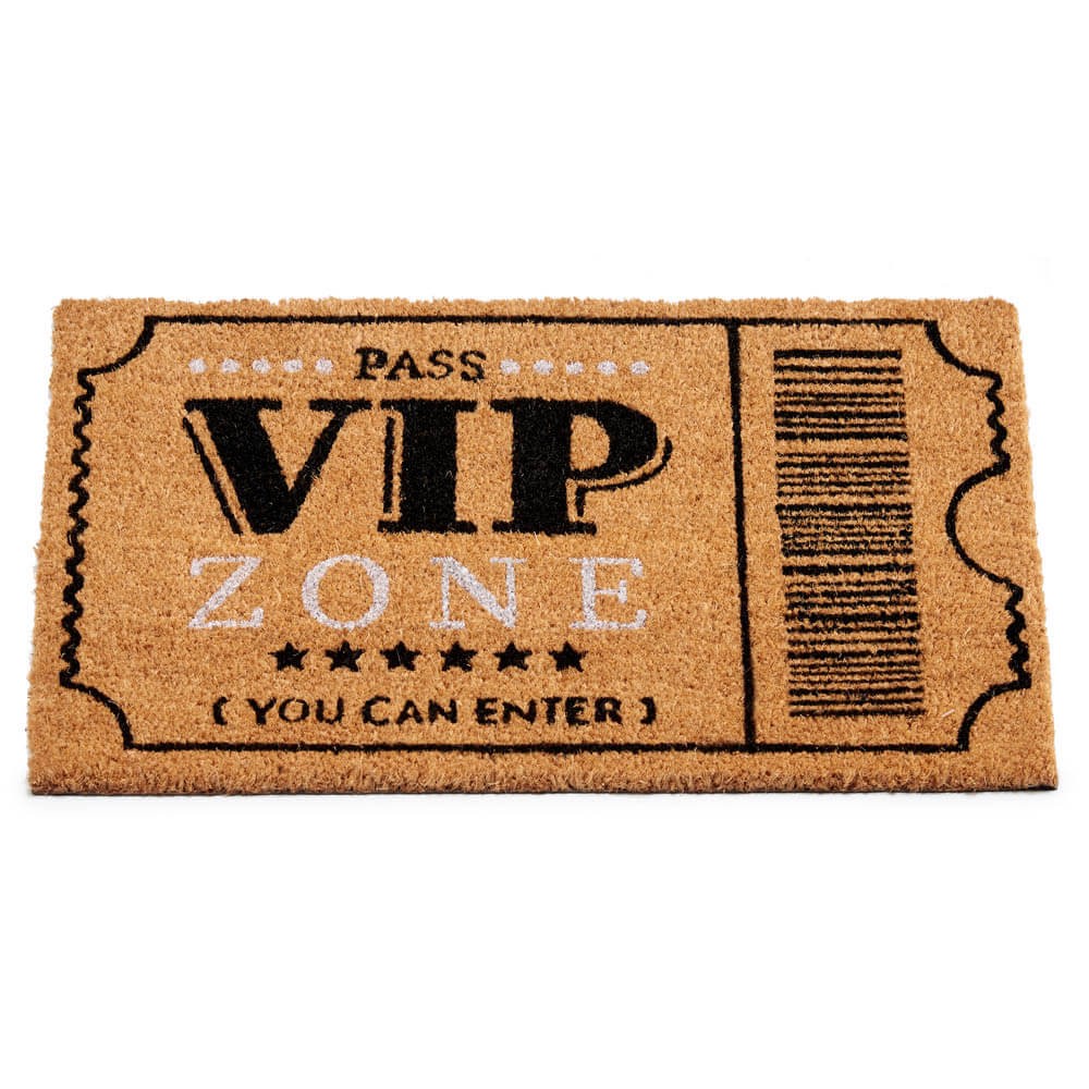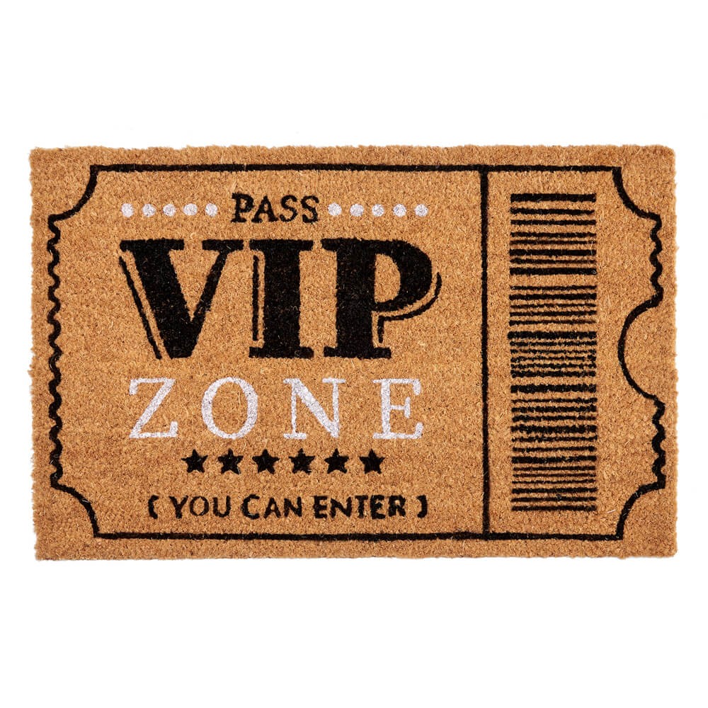 Felpudo original de coco de 60x40 cm con diseño de pase VIP y base antideslizante. Añade un toque original y mantén la suciedad fuera de tu hogar.