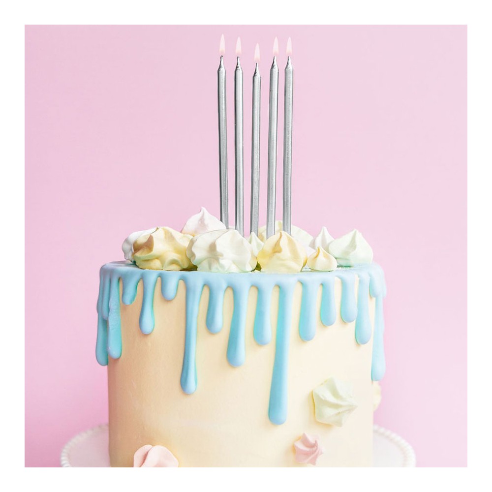 Decora tus tartas con estas velas plateadas de PartyDeco.