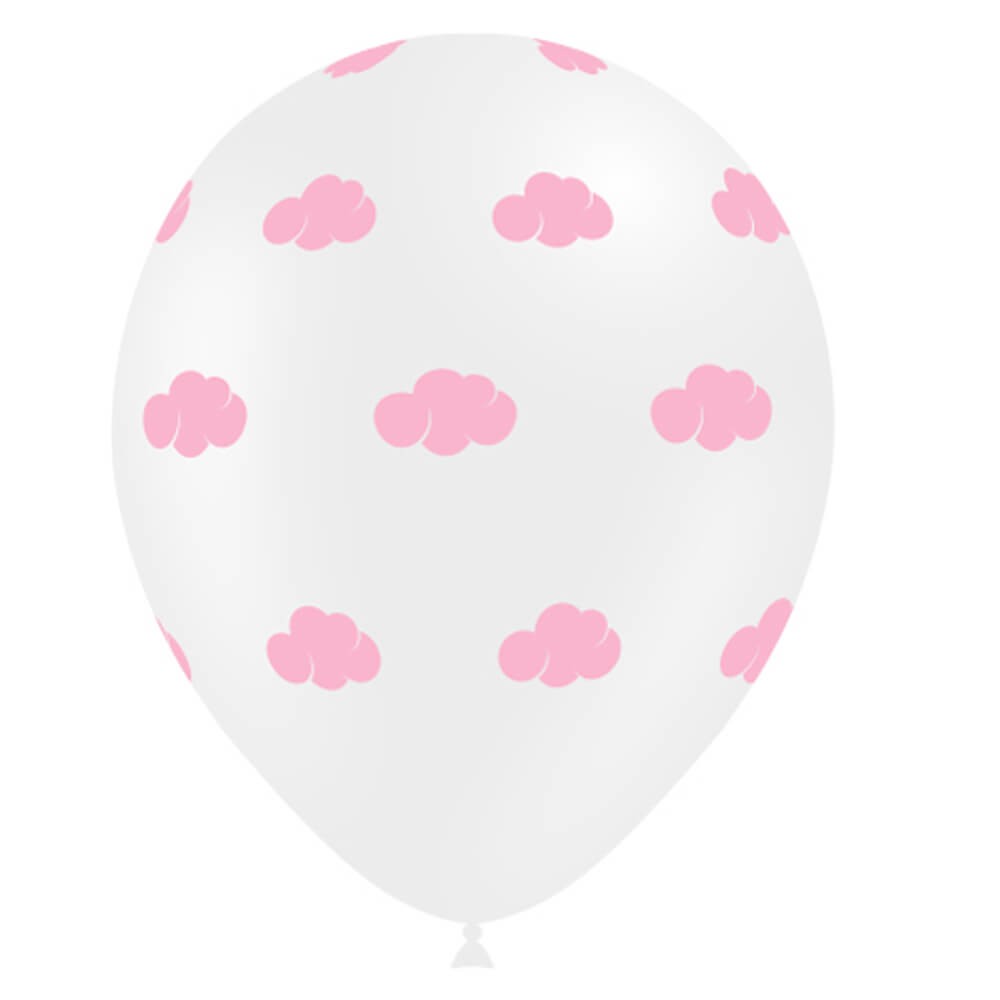 Estos globos impresos con nubes rosas sobre fondo blanco son ideales para decorar fiestas y eventos infantiles, como babyshowers, bautizos, comuniones y cumpleaños, combínalos con otros globos para conseguir una decoración impactante.