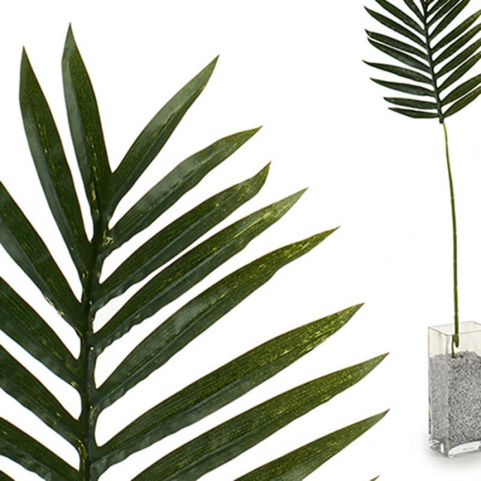 Hoja artificial de palmera, perfecta cómo relleno para arreglos florales o para crear decoraciones de estilo tropical dando un toque selvático a la estancia.