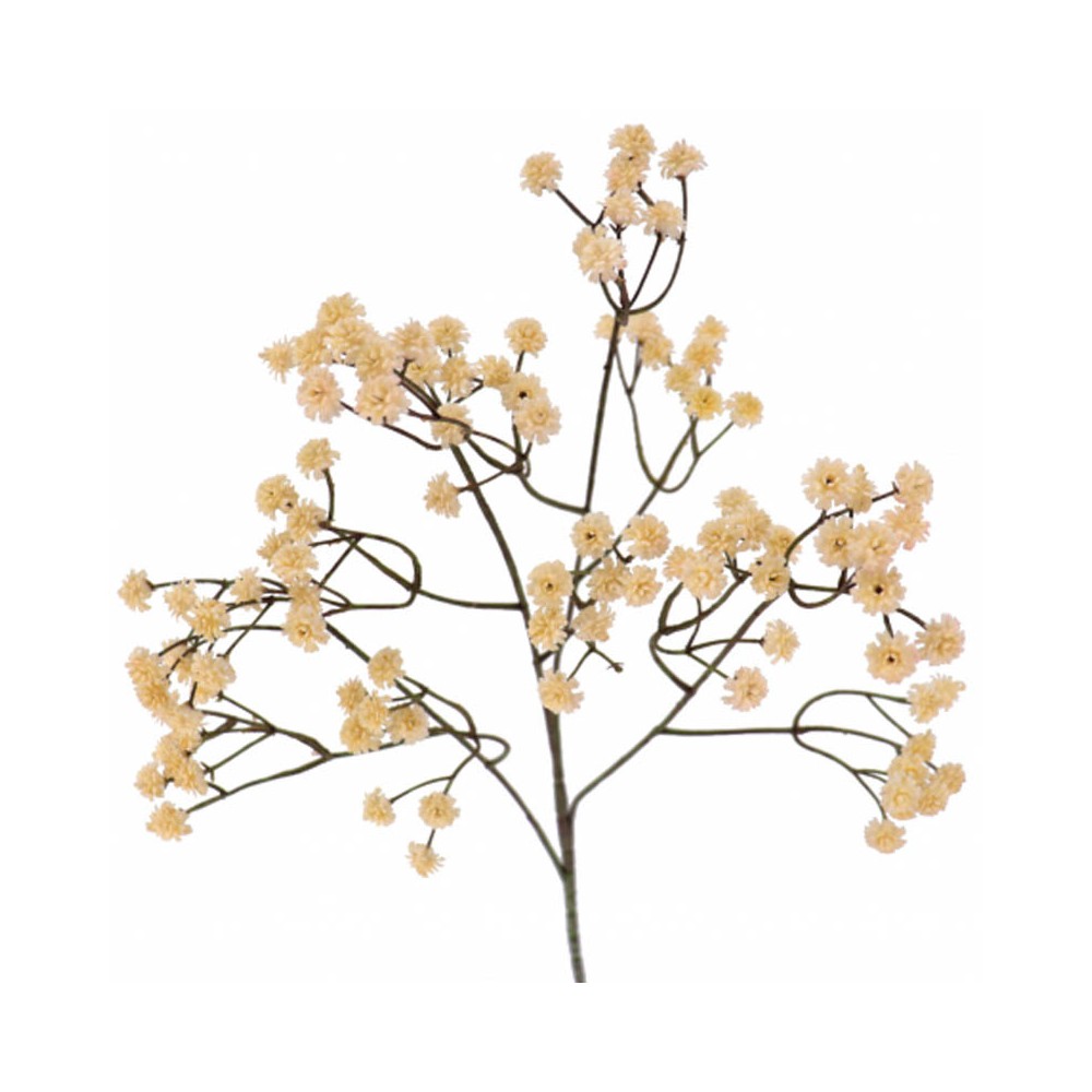 Vara de gypsofilia vintage con numerosas flores artificiales de color mostaza, ideal como flor de relleno para arreglos florales..