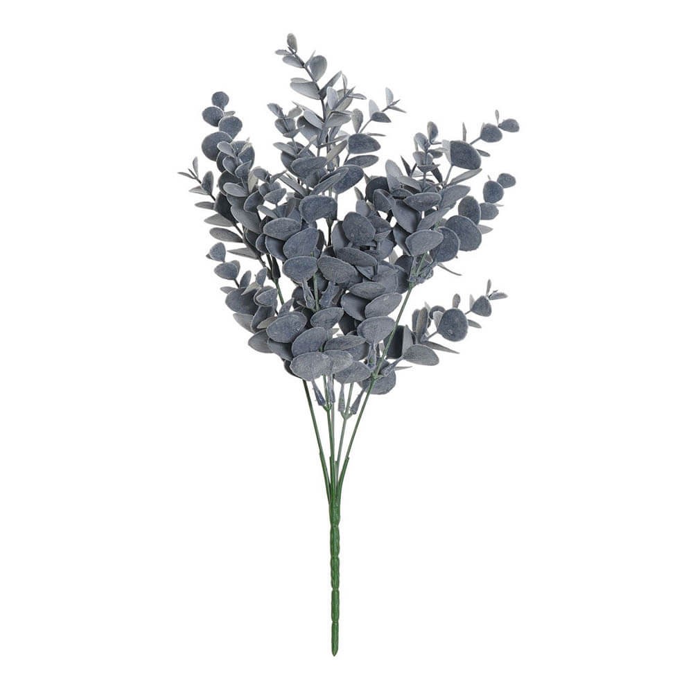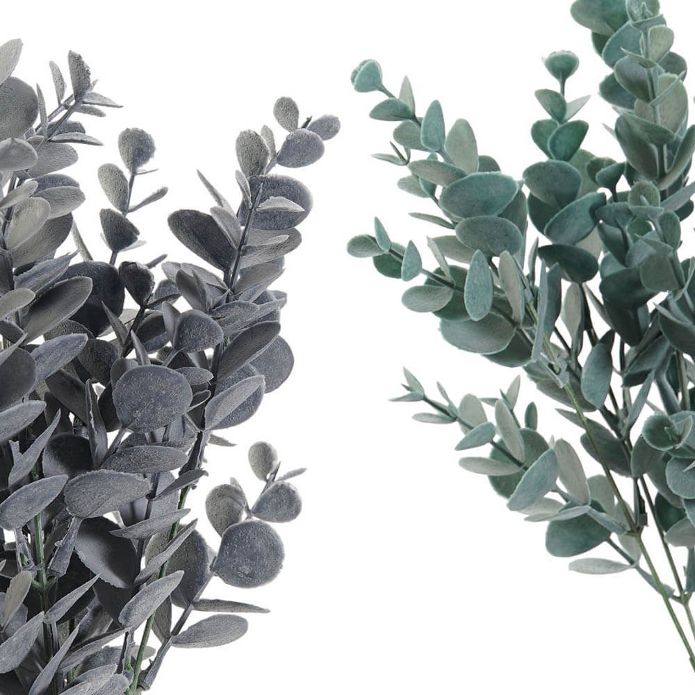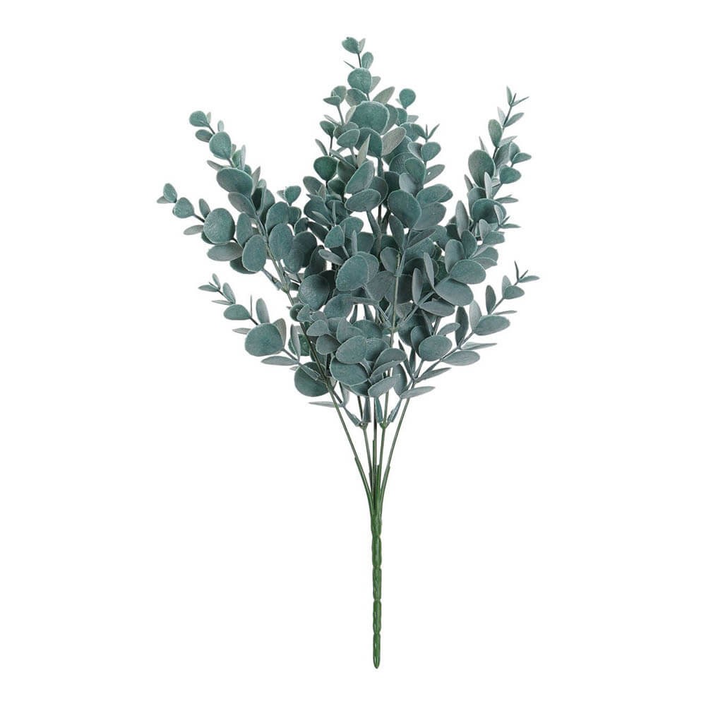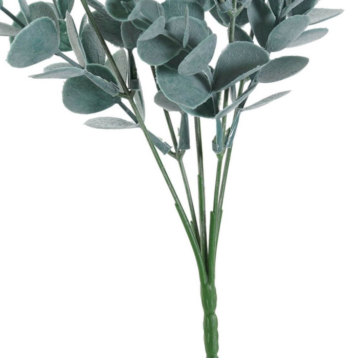 El ramo esta compuesto por varios ramas de eucalipto artificial con hojas de color verde o verde musgo, fabricado en hierro recubierto de polietileno resistente.