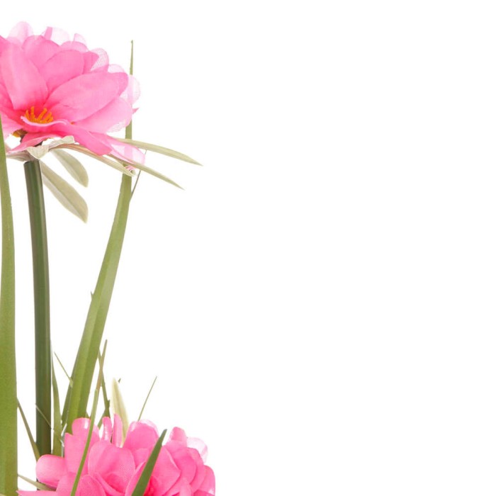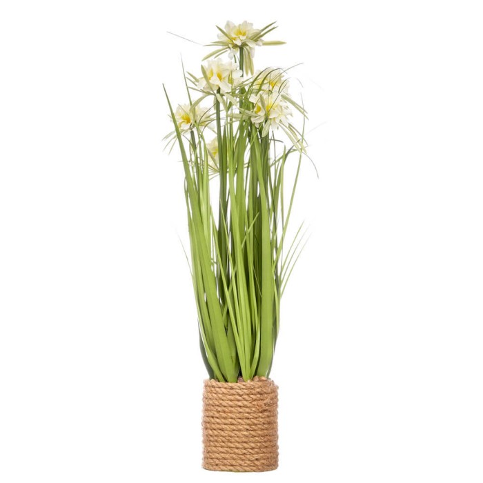 Añade frescura a tu hogar con esta planta artificial con 6 flores de tela en color rosa, morado o blanco, y rodeadas de hierba alta de plástico. Esta planta está diseñada para brindar un aspecto vibrante, perfecta para decorar cualquier espacio de tu casa.
