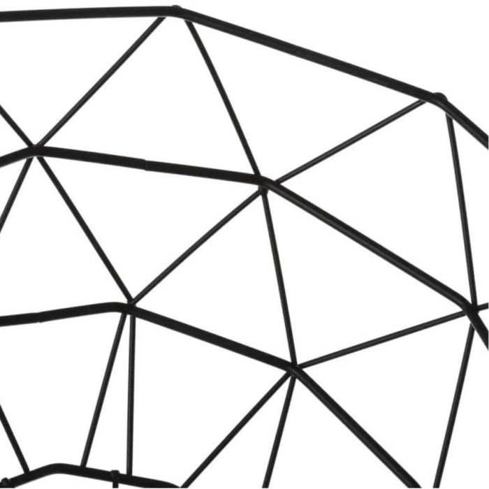 Frutero metálico con forma cónica realizado en hierro de color negro, tiene un diseño geométrico formado por triángulos armados por varillas de hierro que recuerda a un diseño de fantasía origami.