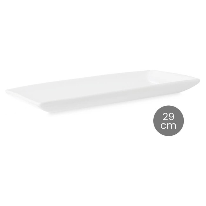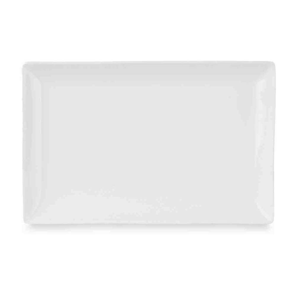 Añade elegancia a tu mesa con esta bandeja de porcelana blanca de 21 x 29 x 2,5 cm, ideal para presentar tus alimentos con estilo.