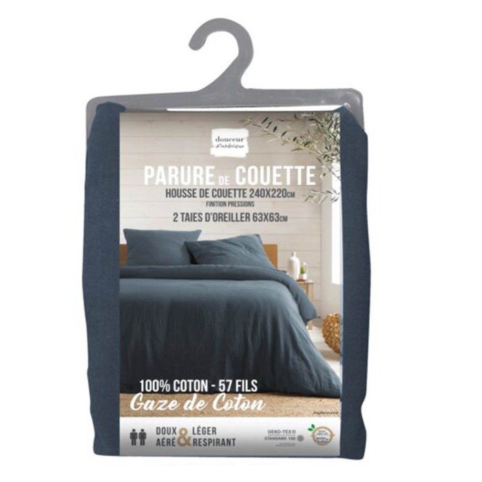 Juego de cama compuesto por 3 piezas confeccionadas 100% en algodón de 57 hilos en color azul, incluye funda nórdica y 2 cuadrantes de 63x63 cm.