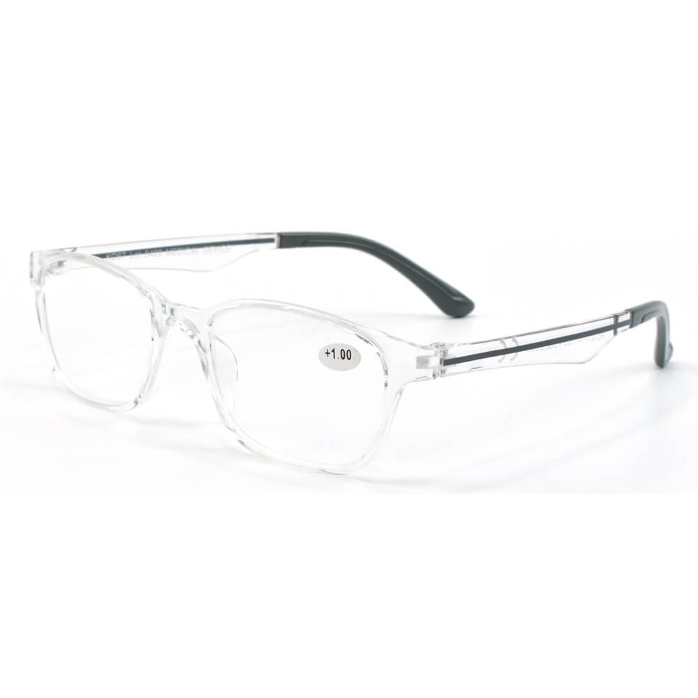 Gafas de presbicia con forma rectangular para vista cansada y lectura con un diseño moderno con patilla bicolor disponible en 3 colores. Incluye funda.