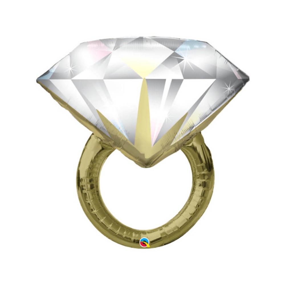 Globo de foil en forma de anillo con un diamante gigante, ideal para fiestas de aniversario, despedida de soltera, boda, etc..