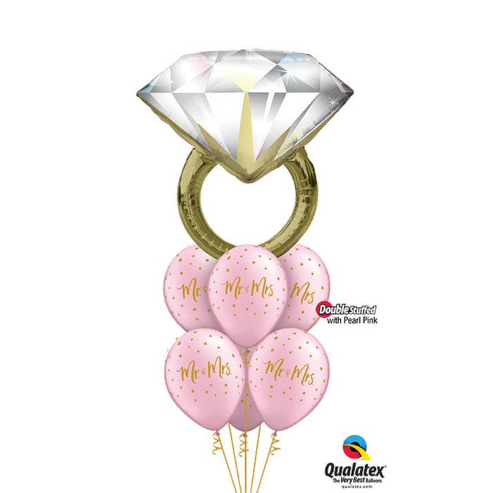 Si estas preparando una despedida de soltera, este globo en forma de anillo de la marca Qualatex es perfecto para armar ramos de globos y decorar de forma divertida y alegre el evento. Haz una composición con varios globos y consigue una decoración impactante y un fondo ideal para realizar las fotos. El globo en forma de anillo de compromiso tiene un maravilloso diseño en color dorado con un fantástico diamante brillante.