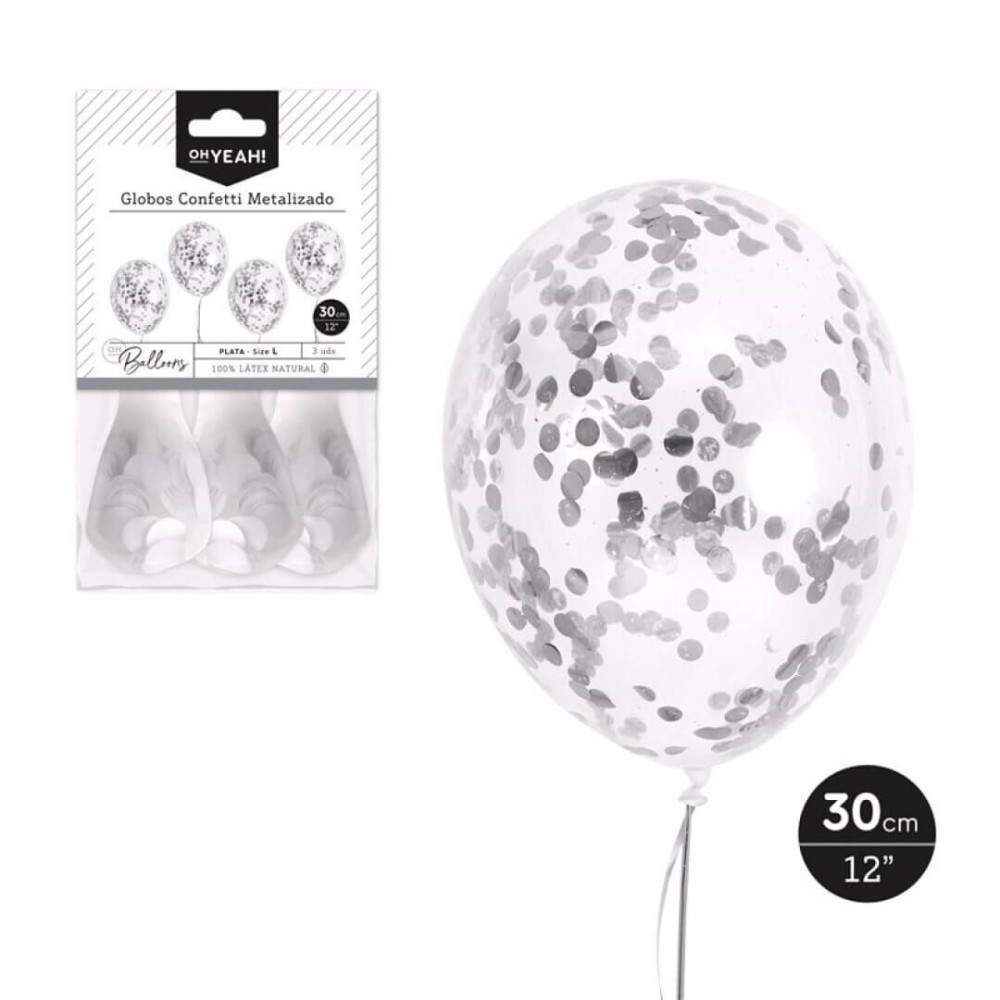 Este set de globos con confeti plata es perfecto para decorar espacios y armar una bonita decoración con globos.