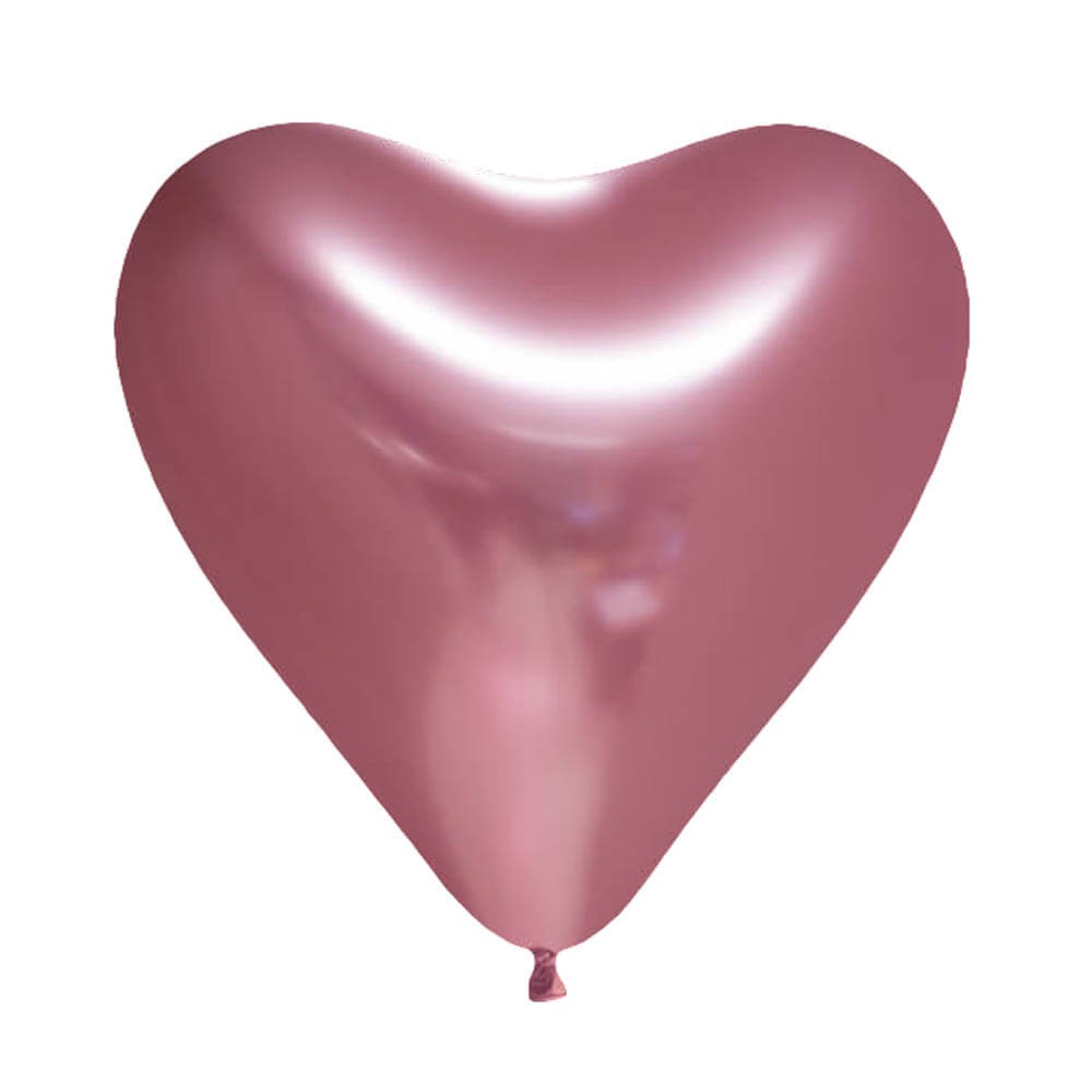 Globos forma de corazón realizados en látex de color rosa cromado que pueden llegar a medir hasta 30cm aproximadamente, perfectos para decorar todo tipo de eventos, para armar ramos de globos para regalo o para decoración de fiestas de cumpleaños, aniversario, boda, baby shower, etc.
