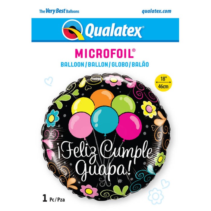 GLOBO FELIZ CUMPLE GUAPA NEGRO 45CM