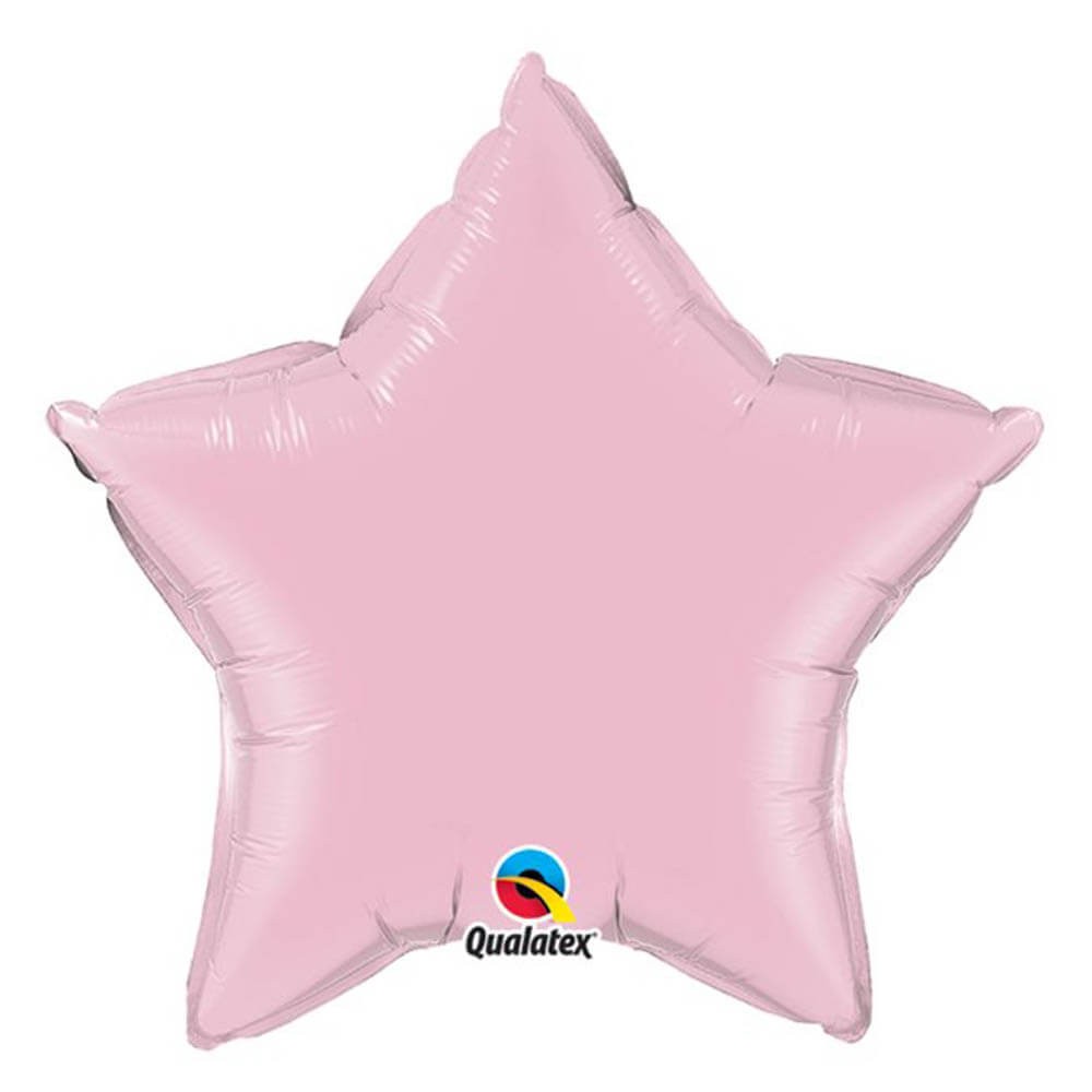 Globo de foil en forma de estrella de color rosa claro acabado brillo, fabricado en papel de aluminio con válvula de auto sellado para mantener el aire, ideal para decorar todo tipo de fiestas y eventos.