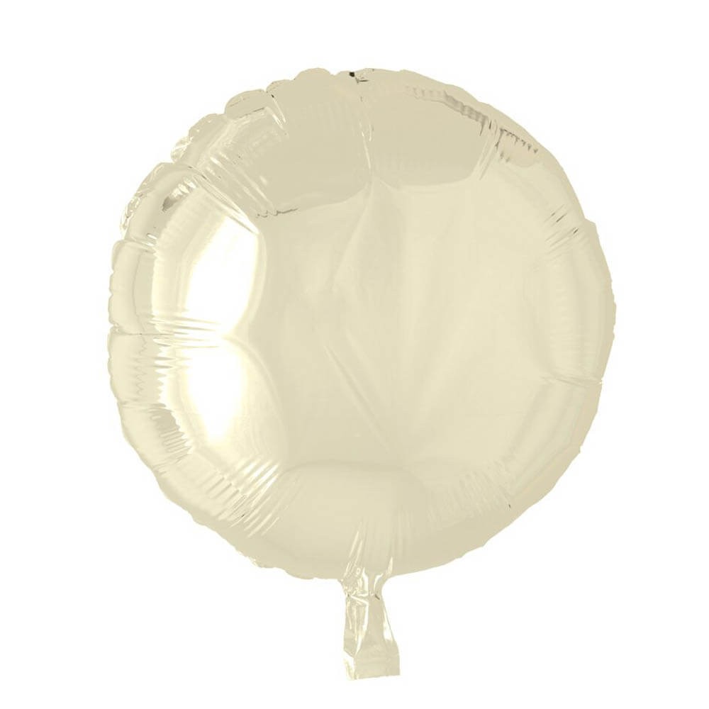 Globo de foil redondo de 46 cm de diámetro en color marfil, ideal para decorar fiestas y eventos.