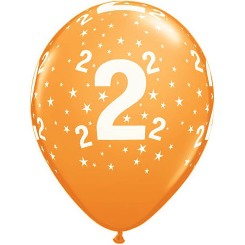 Globos de látex para cumpleaños de la marca Qualatex en colores surtidos con el número 2 y estrellas impresas, pueden llegar a medir hasta 28 cm aproximadamente, perfectos para decorar fiestas de cumpleaños infantiles. Las tintas utilizadas no son tóxicas y cumplen con todas las normativas y requisitos.