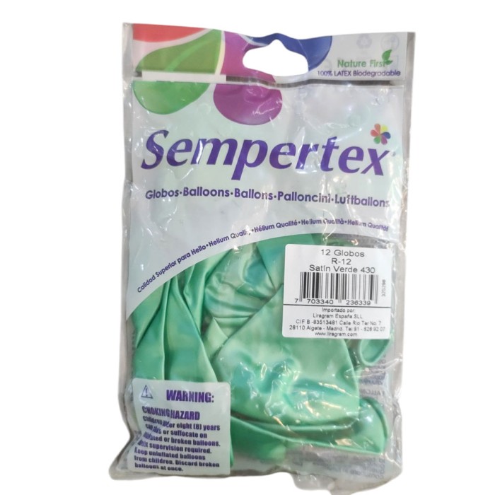 12 globos de látex de 30 cm de la marca Sempertex en color verde satinado.
