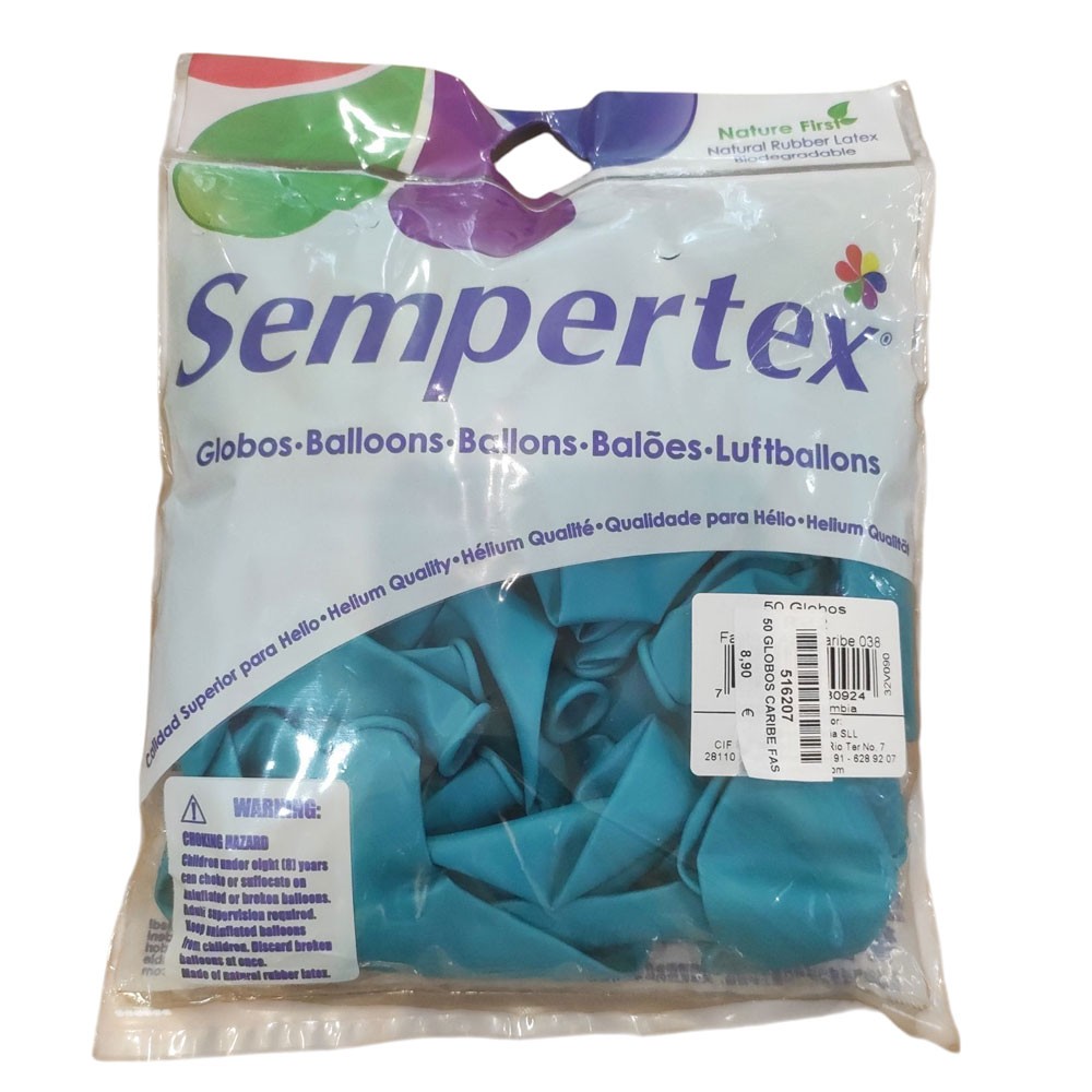 Los globos Sempertex de color azul caribe se envían desinflados en paquete de 50 unidades, el material de gran calidad con el que están fabricados permite conseguir una decoración con globos duradera. Perfectos para decoradores.