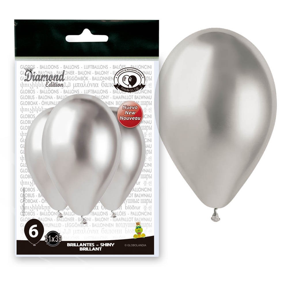 GLOBOS DE LÁTEX PLATA ESPEJO - 31X39CM 6UND