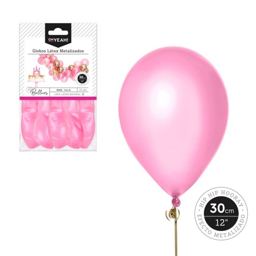 Globos de látex en color rosa efecto metalizado, perfectos para realizar decoraciones en comuniones, baby shower, bautizos, cumpleaños y diferentes fiestas con temática de princesas, unicornios, sirenas, etc.
