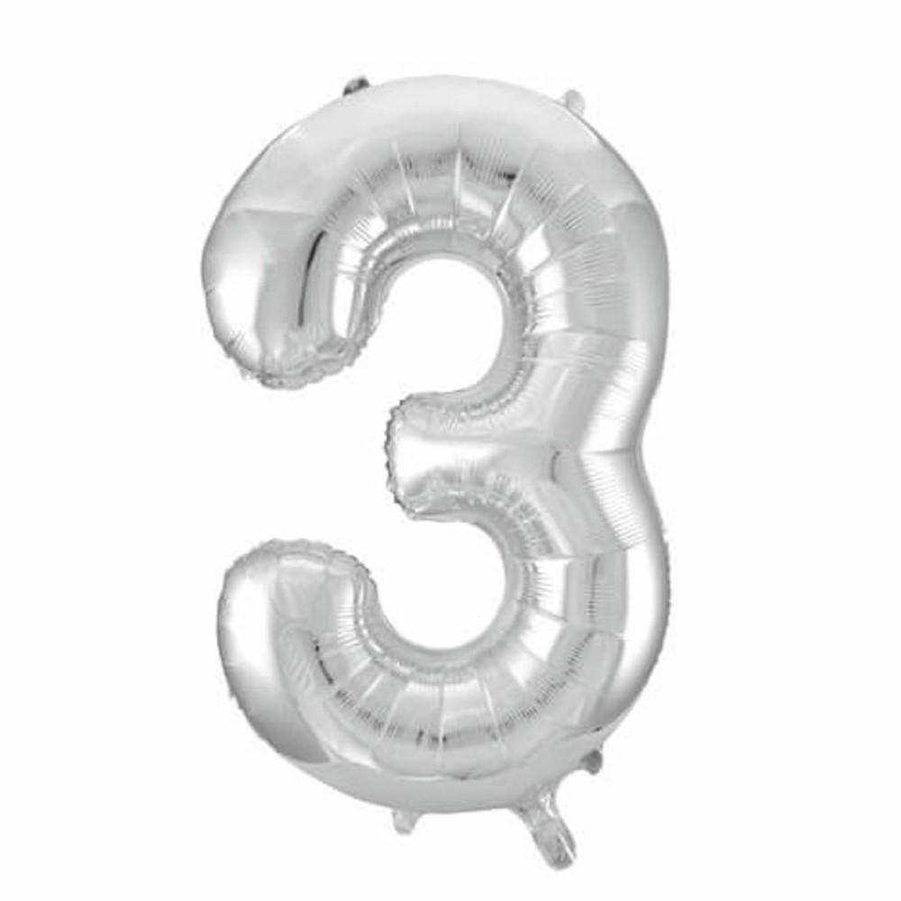 Globo de foil metálico en color plata con forma de número 3, idóneo para fiestas de cumpleaños y aniversario. Este globo de cumpleaños es perfecto para armar ramos de globos y decorar de forma divertida y alegre la fiesta de tu hij@, conseguirás una decoración impactante y un fondo ideal con el globo de número para realizar todas las fotos.
