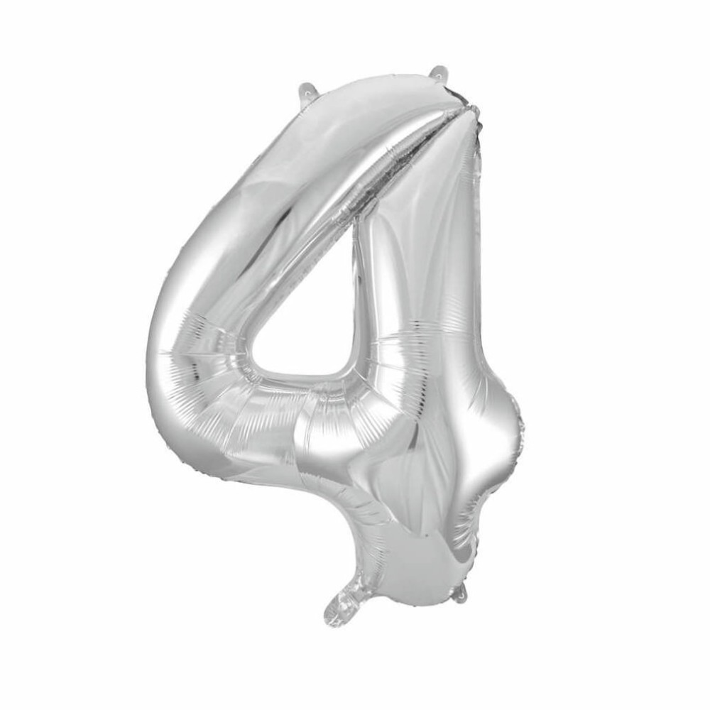 Globo de foil metálico en color plata con forma de número 4, idóneo para fiestas de cumpleaños y aniversario. Este globo de cumpleaños es perfecto para armar ramos de globos y decorar de forma divertida y alegre la fiesta de tu hij@, conseguirás una decoración impactante y un fondo ideal con el globo de número para realizar todas las fotos.