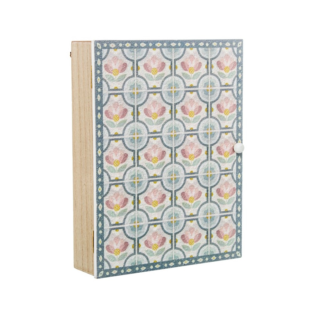 Caja Porta Llaves Madera Deco. Azulejo Flores 20x5,5x26cm