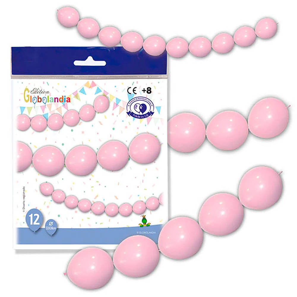 Bolsa con 12 globos de látex rosas con conector, perfectos para realizar guirnaldas con globos fácilmente.