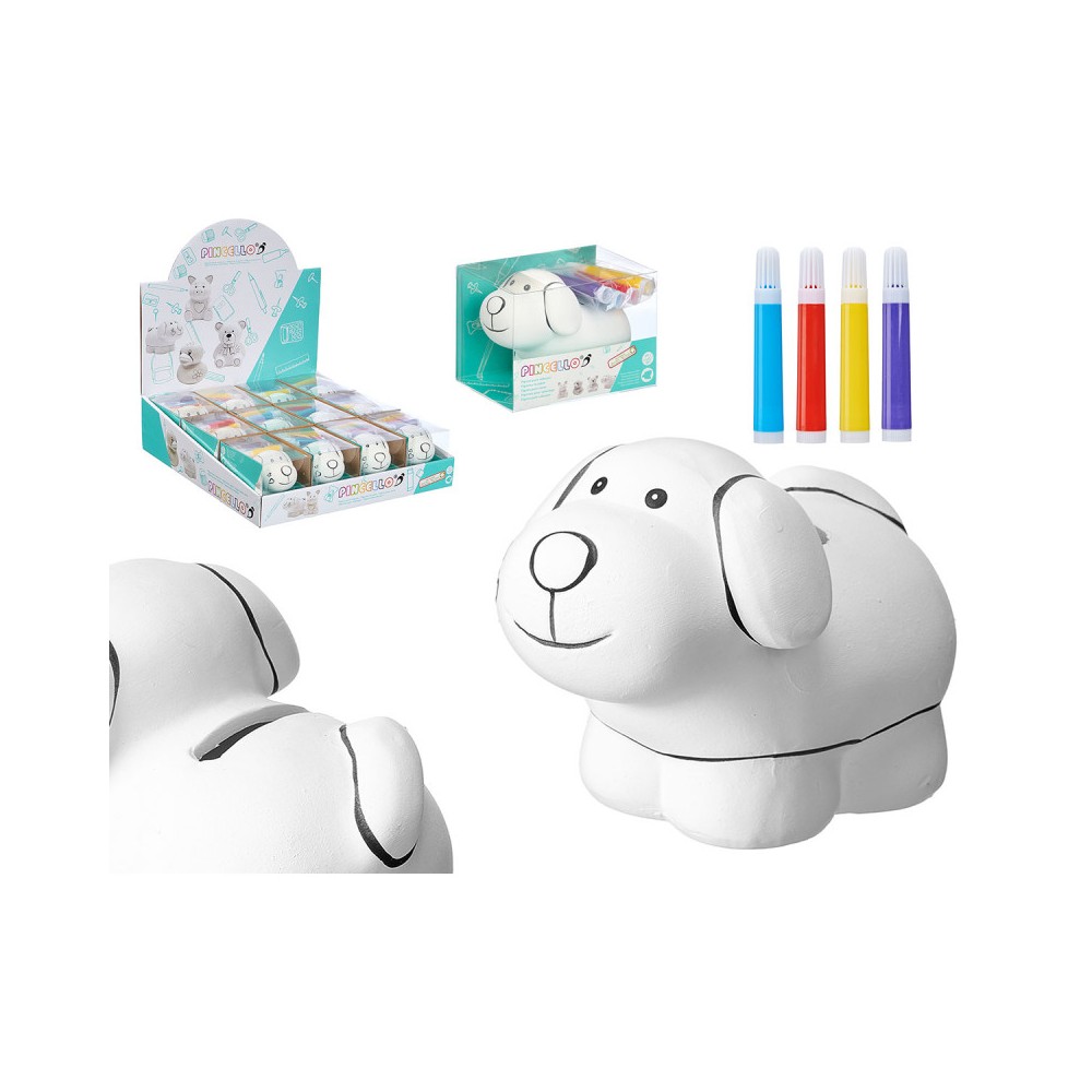 HUCHA PERRO CON 4 ROTULADORES/24