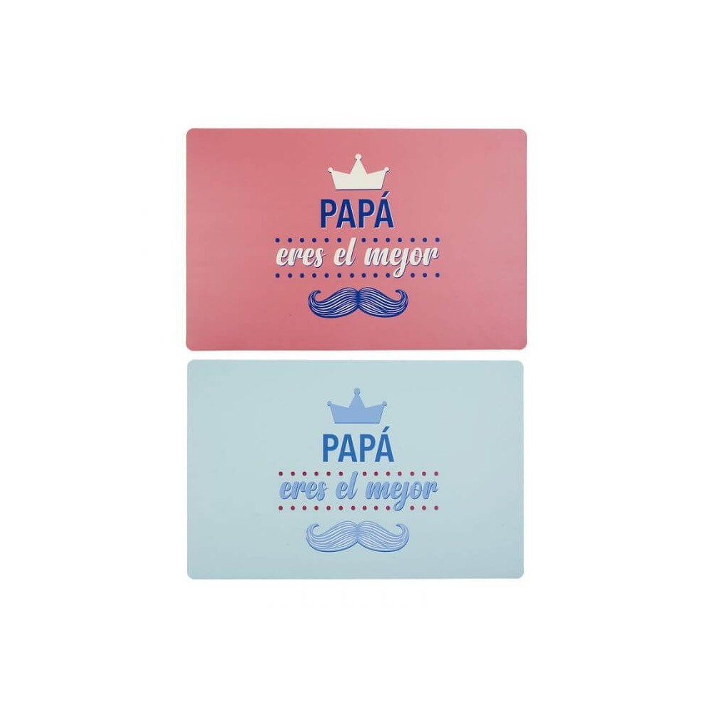 Mantel individual de plástico decorado con frase " Papá eres el mejor", disponible en dos colores.