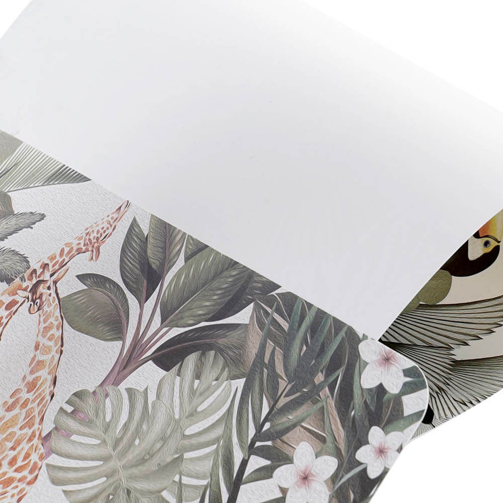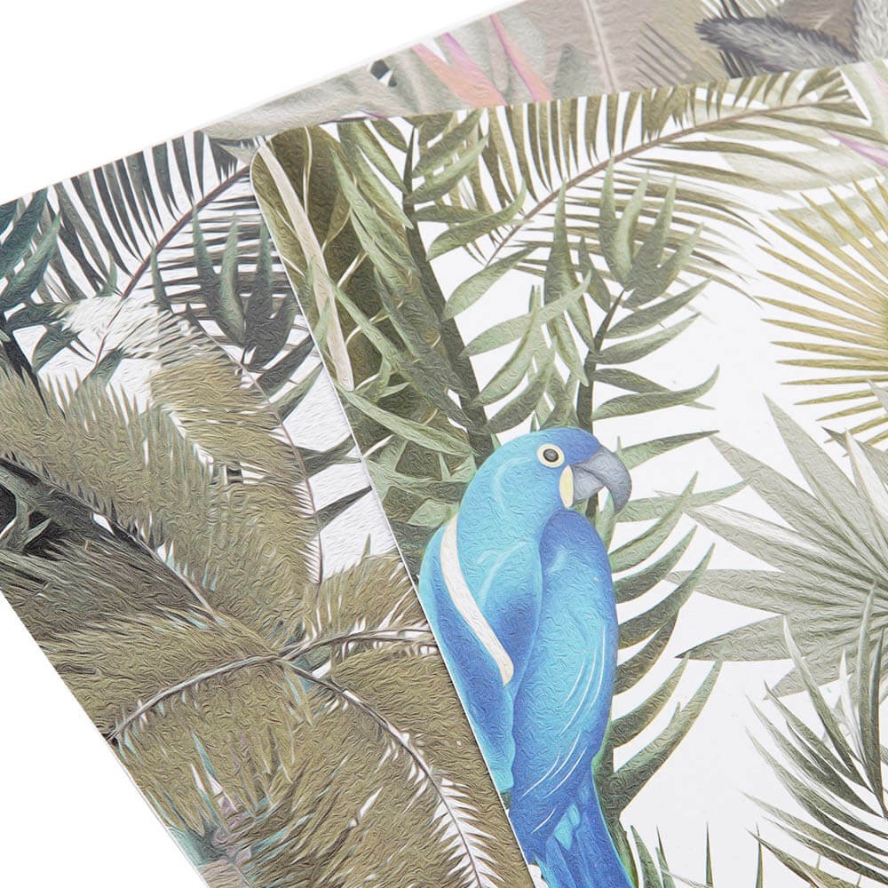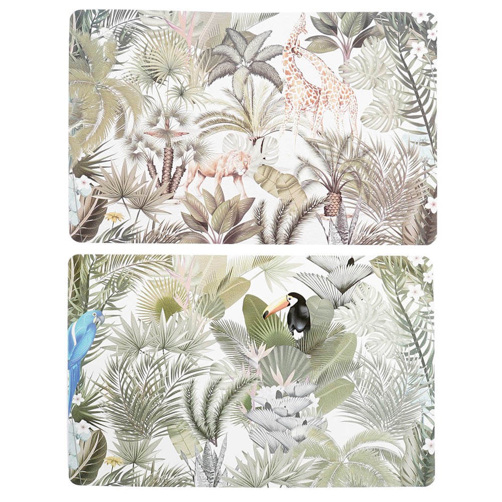 Mantel individual diseño salvaje decorado con plantas y animales de la selva.