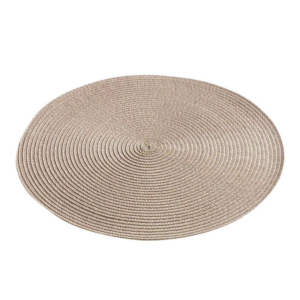 Mantel individual redondo de 35 cm de diámetro realizado en polipropileno de alta calidad, resistente y flexible. Este mantel individual es ideal para vestir mesas, se puede emplear tanto para comidas formales como informales. Un mantel individual formado por fibras trenzadas de color topo, perfecto para aportar un toque de color a la mesa.