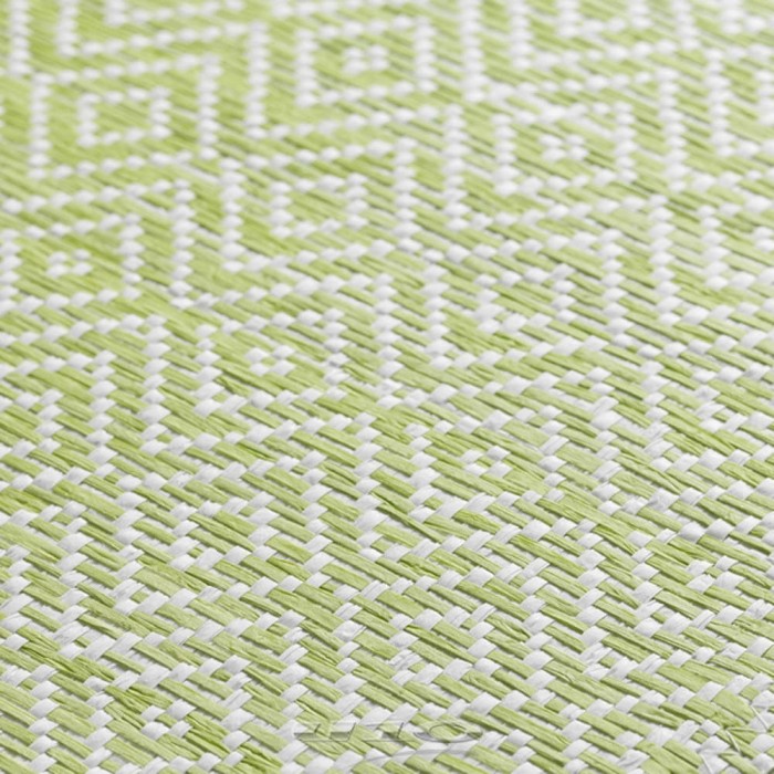 Mantel individual redondo de 38 cm de diámetro realizado con tiras de polipropileno, resistentes y flexibles. Este mantel individual es ideal para vestir mesas, se puede emplear tanto para comidas formales como informales. Un mantel individual verde formado por fibras trenzadas realizando un maravilloso dibujo de rombos que aportara un toque de color a la mesa.