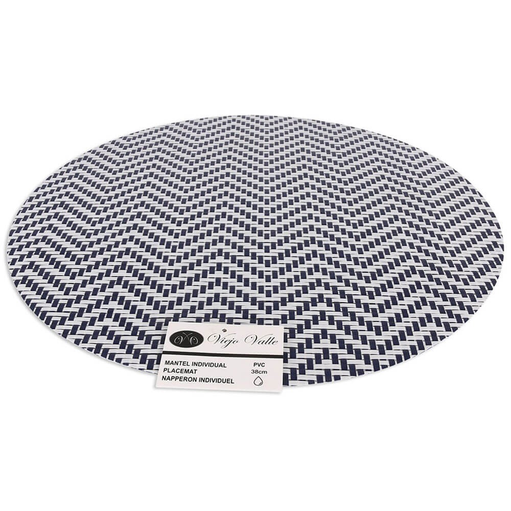 Mantel individual de polipropileno trenzado diseño zigzag en blanco y azul.