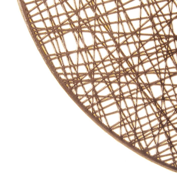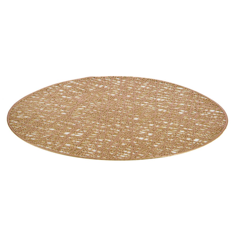 Añade elegancia a tu mesa con el mantel individual en color oro de 70% PVC y 30% poliéster, perfecto para ocasiones especiales. Medidas: 38 x 38 cm.
