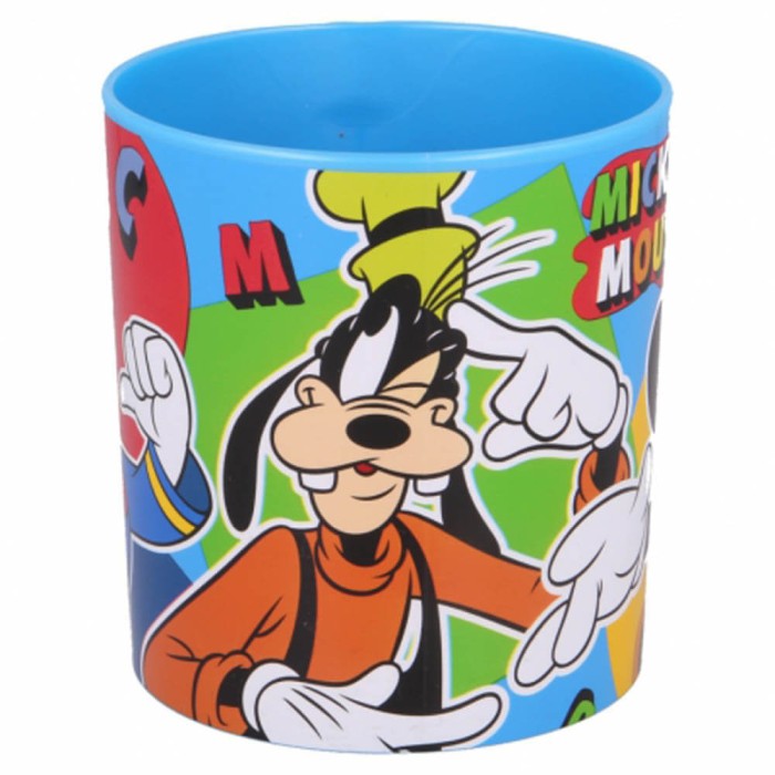 Taza de plástico libre de BPA con 350 ml de capacidad, decorada con los personajes animados de Disney, Mickey mouse, Pluto y Pato Donald.