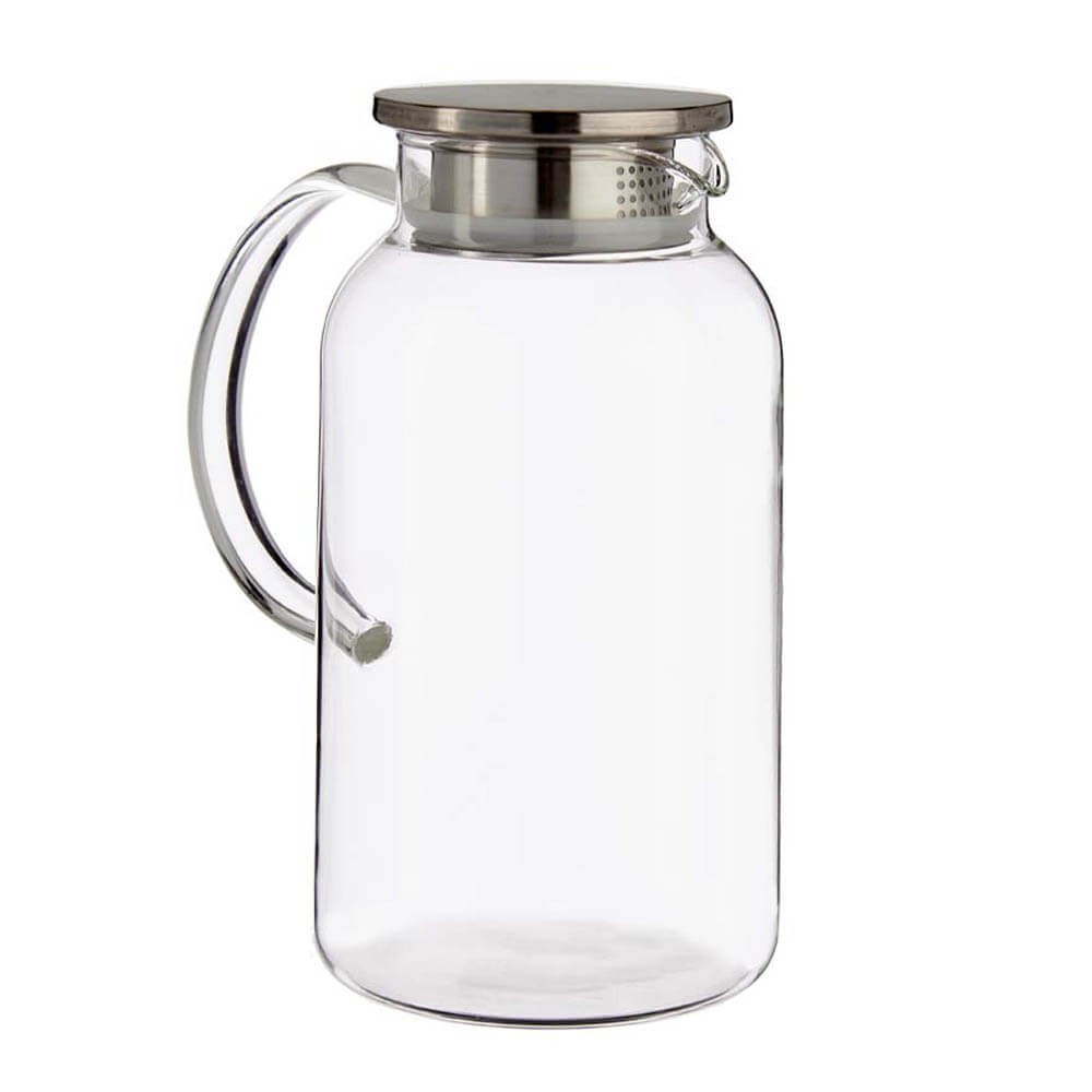 Jarra para agua de 1,9L de capacidad realizada en vidrio borosilicato transparente y resistente a los cambios de temperatura con tapa de acero inoxidable con doble posición, y junta de silicona para un ajuste perfecto.