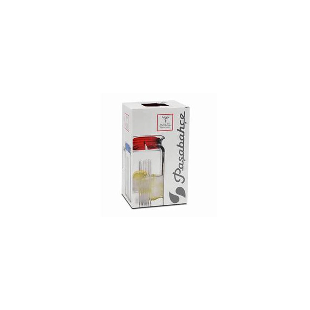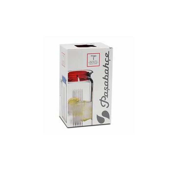 Jarra de agua para nevera de 1 litro de capacidad con asa y tapa roja de PVC.