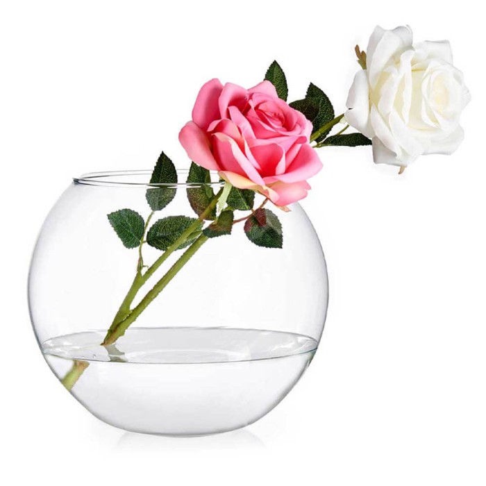 Jarrón pecera realizado en vidrio transparente.