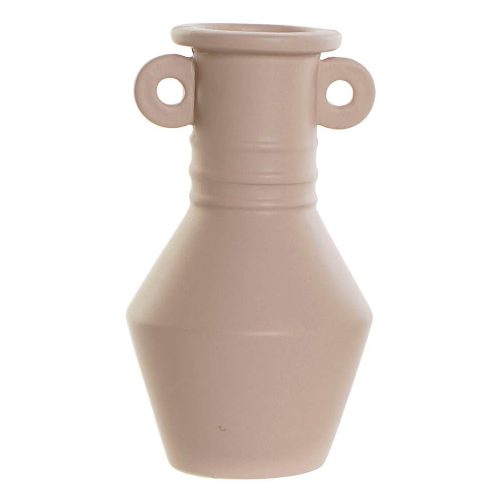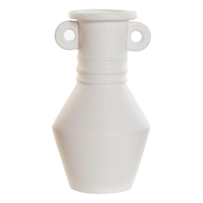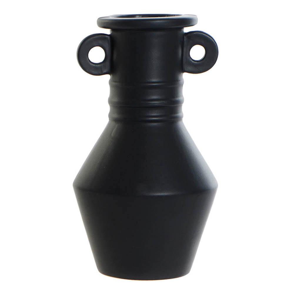 Jarrón decorativo realizado en porcelana con un original diseño de estilo nórdico en color negro, beige o blanco, diseño con base en forma de rombo, cuello largo con anillas en relieve y dos pequeñas asas decorativas.