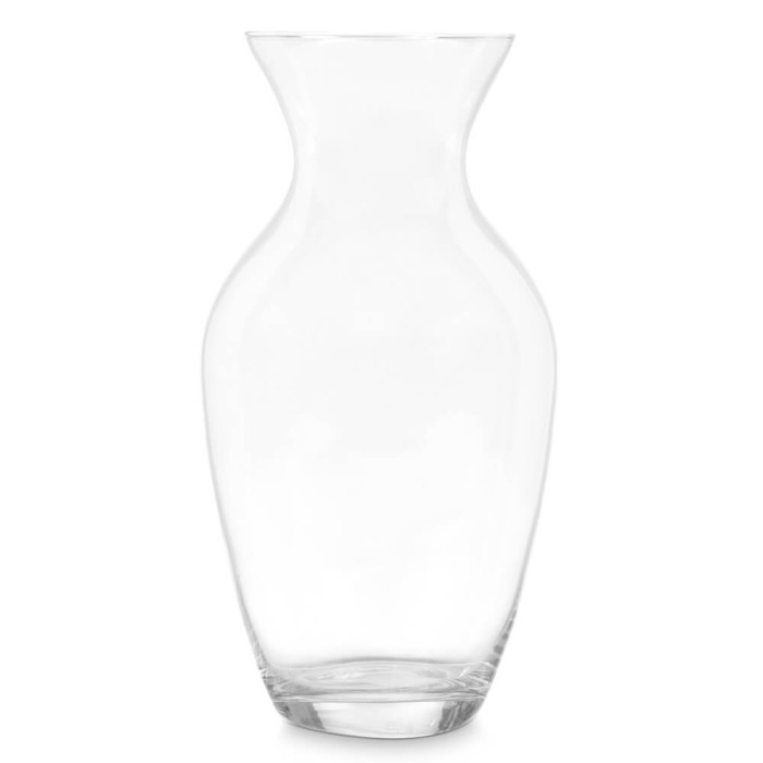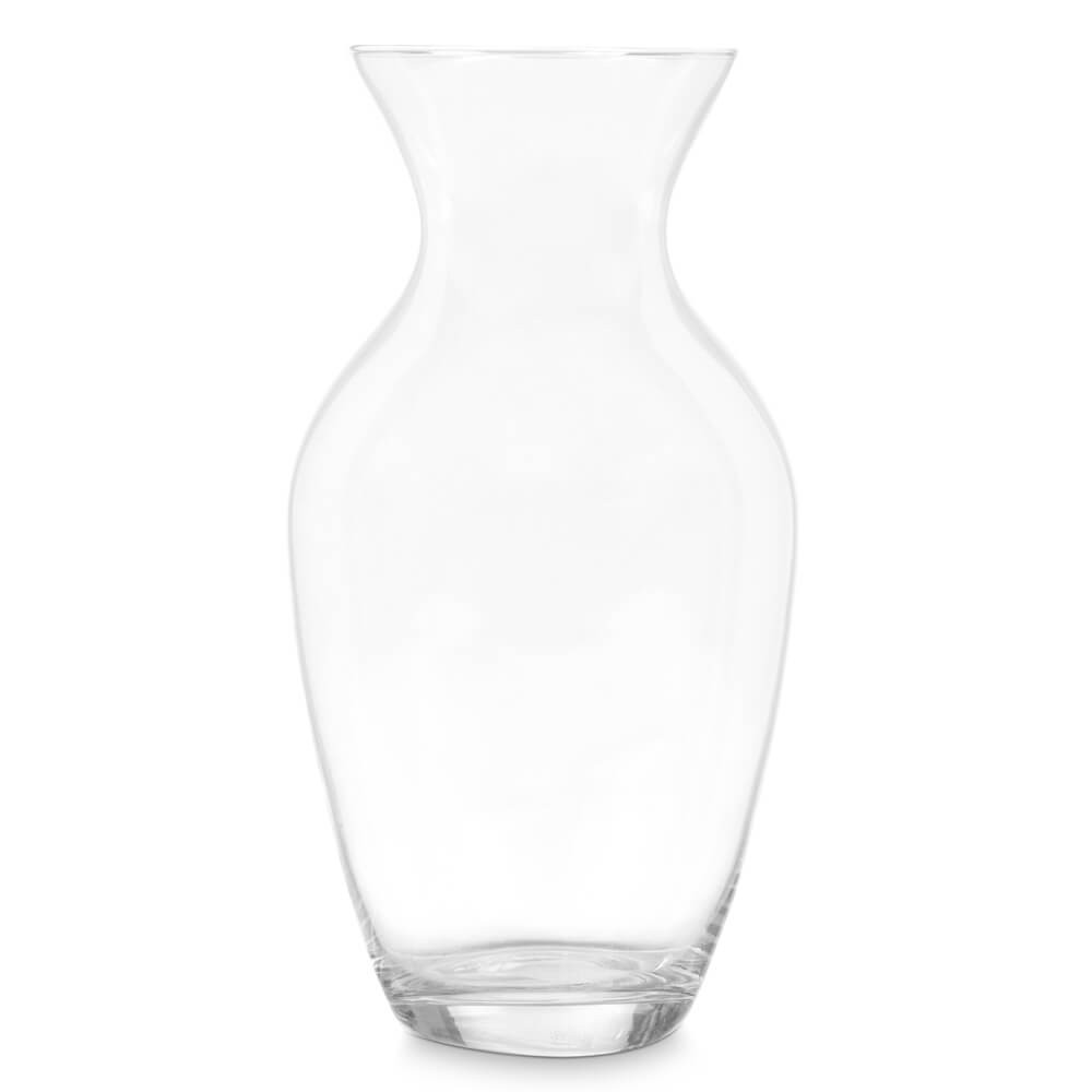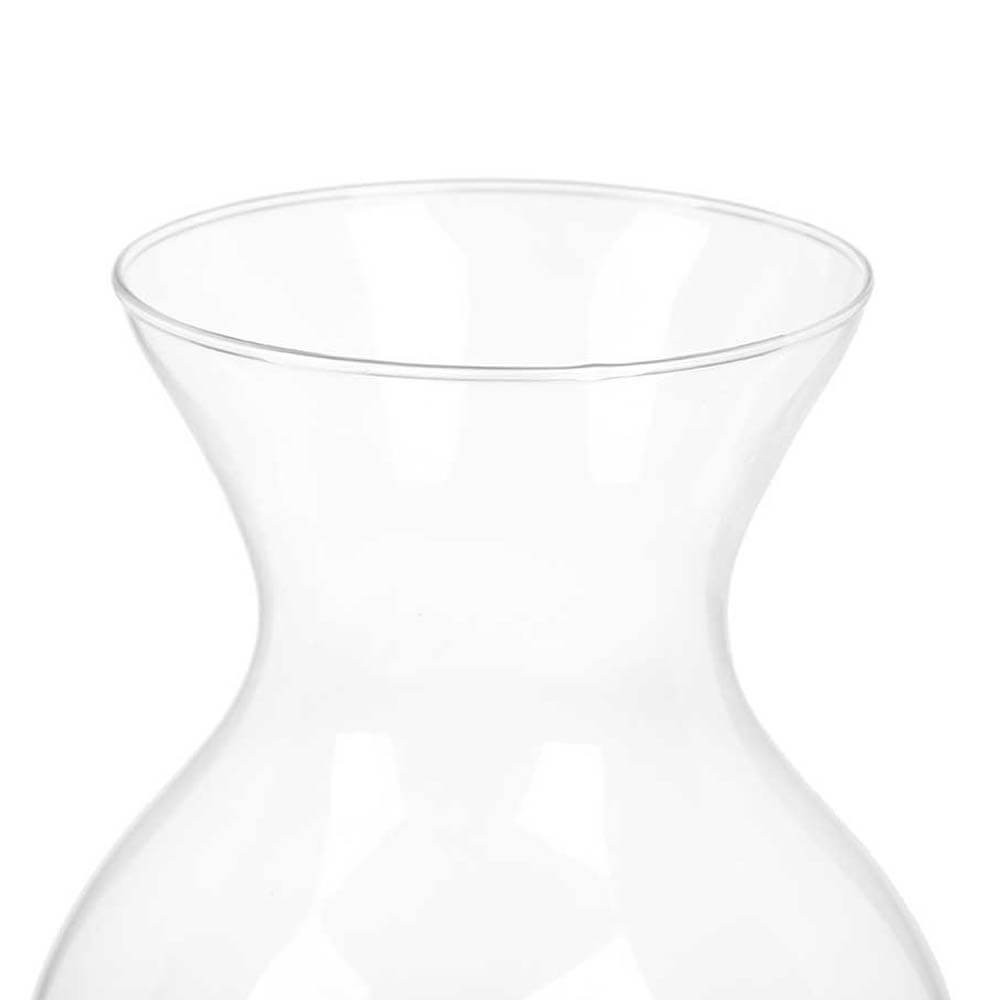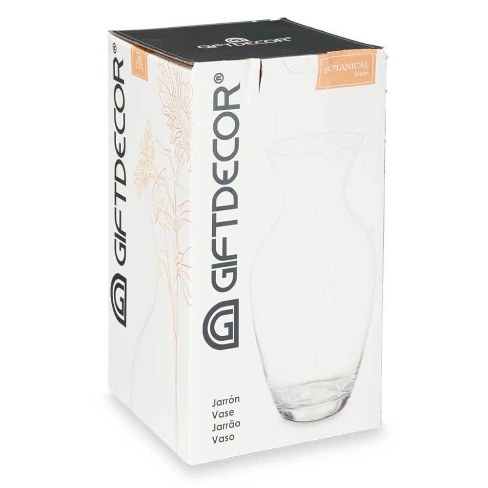 Jarrón de cristal transparente con forma abombada y cuello estrecho, ideal para exhibir flores frescas, secas o artificiales y embellecer tu hogar. 13x13x26 cm