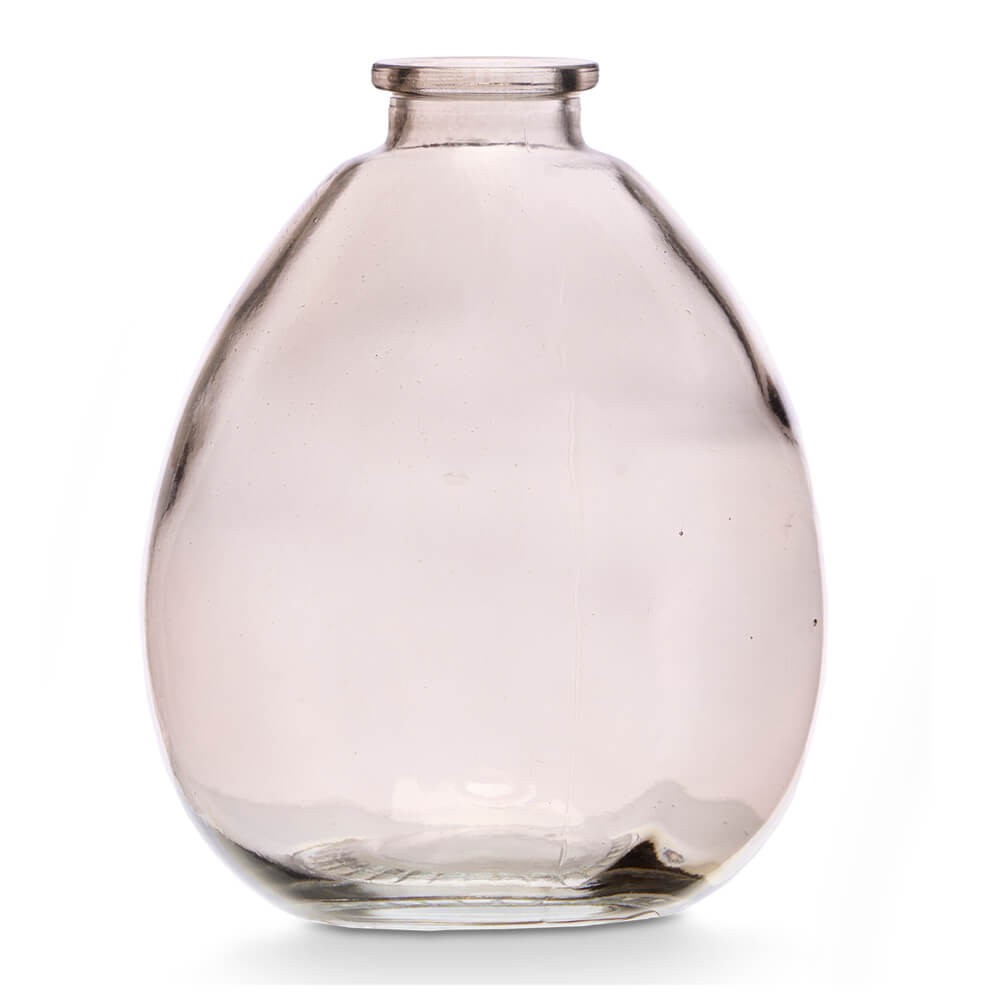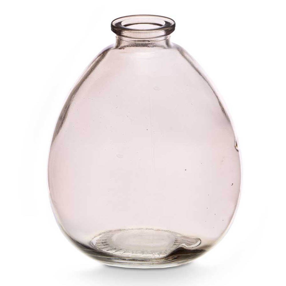 Añade elegancia y color a tu hogar con este jarrón de cristal rosa de estilo artesanal, perfecto para cualquier estilo decorativo. 10x10x12,3cm.