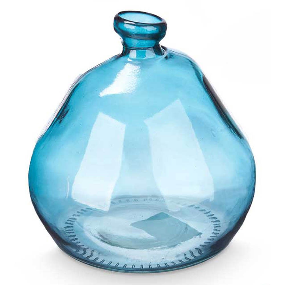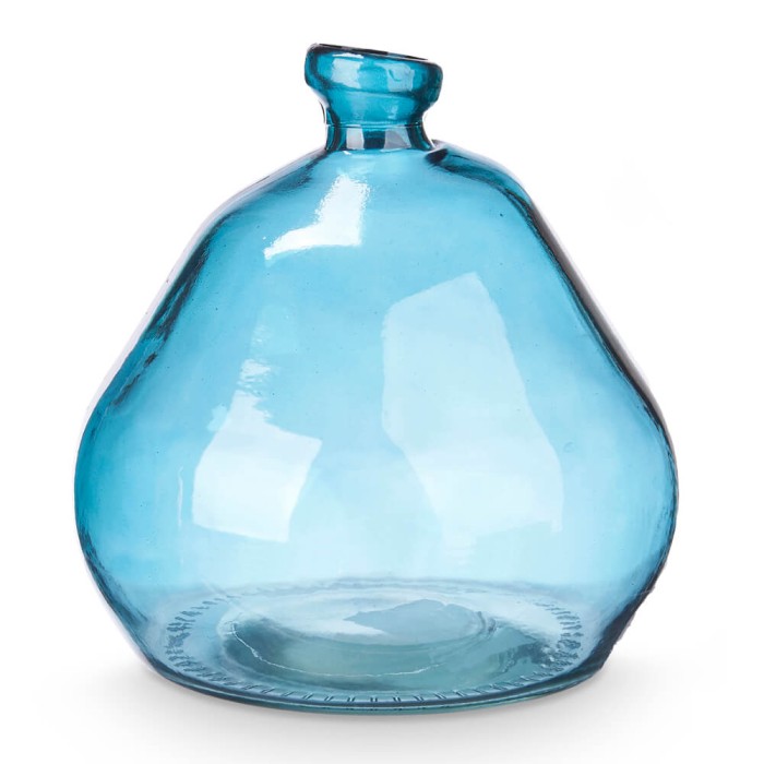 Jarrón de cristal turquesa con diseño de estilo artesanal y formas irregulares. Añade elegancia y color a tu hogar. 17 x 17 x 18 cm.