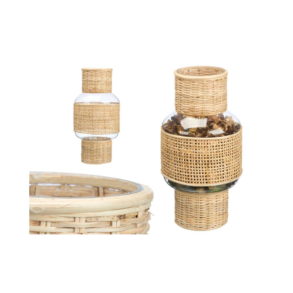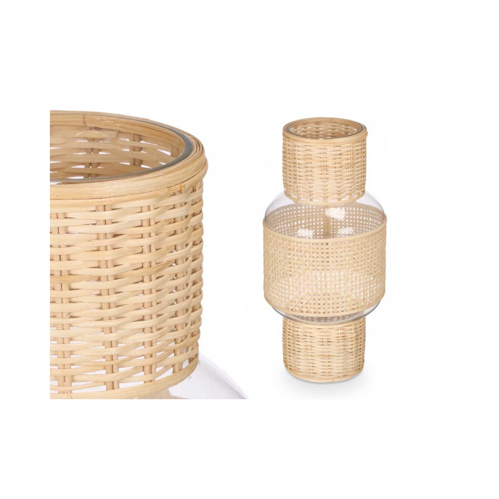 JARRON VIDRIO Y RATTAN GRANDE 18 x 18 x 38 cm