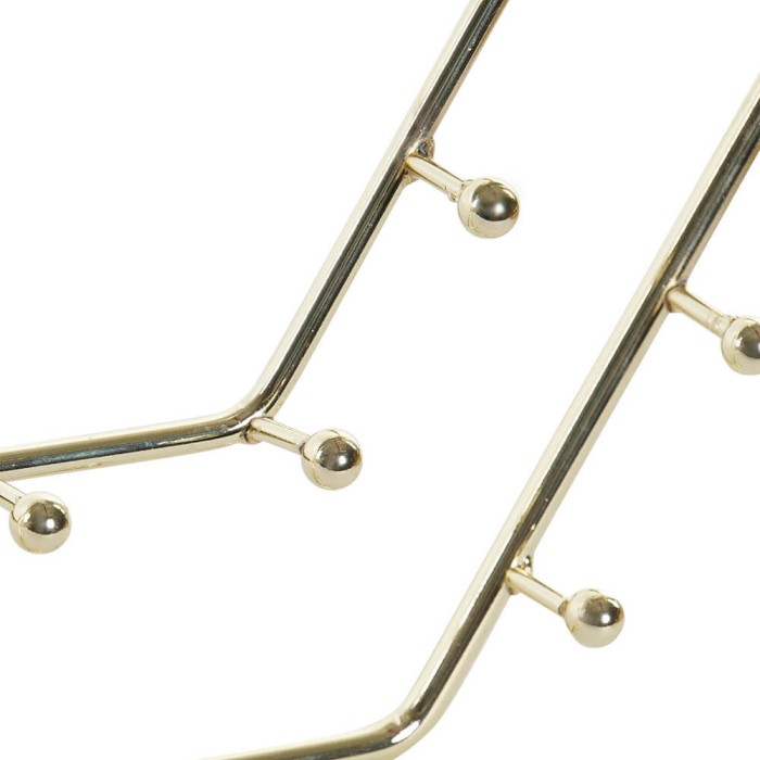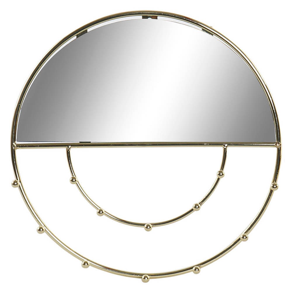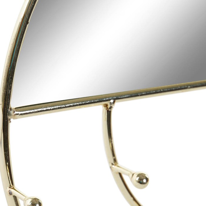 Joyero de pared con espejo realizado en metal dorado acabo brillo, el joyero cuenta con varios colgadores para organizar pulseras, collares, etc. Un joyero con espejo disponible en formato redondo o hexagonal, al ser abierto se encuentra todo rápidamente sin necesidad de rebuscar en cajones, además los collares no se enredan.