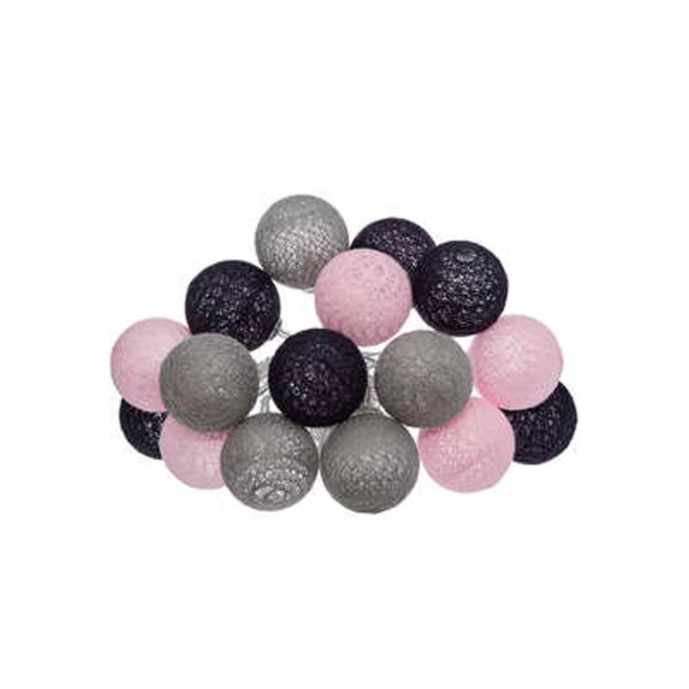 Guirnalda decorativa con 16 bolas de colores de 3,5 cm de diámetro, fabricadas en algodón con luz led de color blanco en el interior.