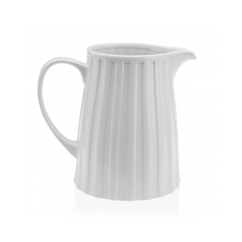 Jarra lechera de 790 ml de capacidad, resistente y duradera, realizada en porcelana de color blanco con un bonito diseño acanalado, perfecta para calentar, transportar y servir la leche en la mesa.